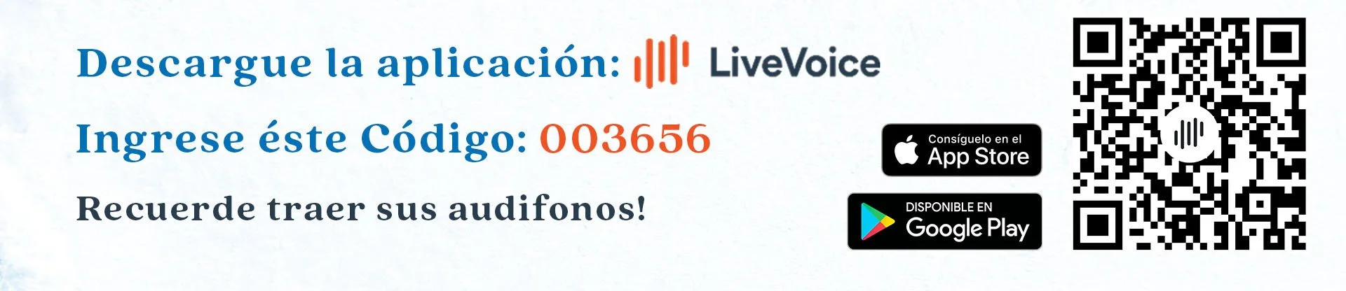 Cada domingo a las 10:45 am ofrecemos traducción simultánea durante nuestro servicio de adoración principal. La traducción está disponible a través de la aplicación LiveVoice, la cual puede ser descargada en el enlace que encontrará abajo. Si necesita más ayuda para el proceso, puede observar el siguiente video con instrucciones. Cuando nos visite, por favor traiga su teléfono y sus audífonos para la traducción!