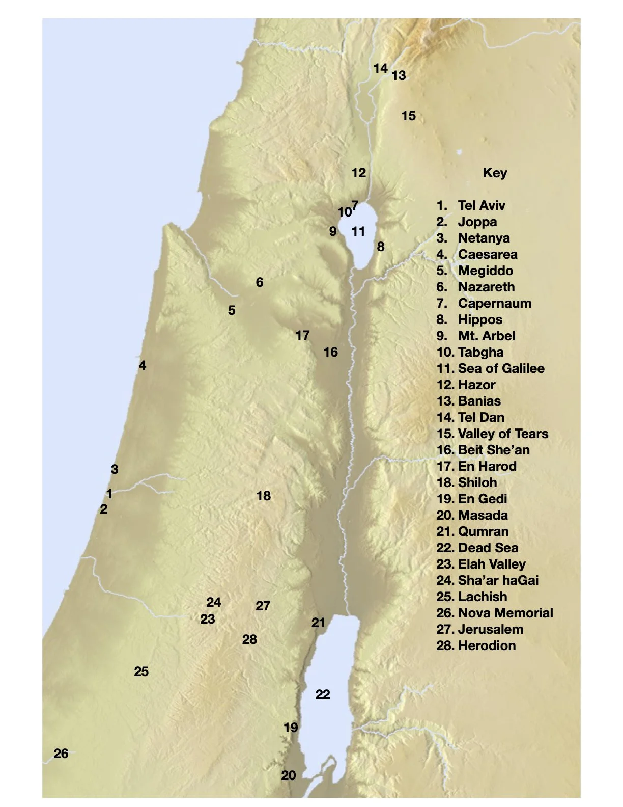 Upon arrival and after completing passport control, we will be greeted by our guide, Mickey Nikolaev. Should time permit, we will visit the historic port of Joppa (also referred to as Jaffa or Yafo). We will then proceed to our hotel for our first Israeli dinner and overnight in Netanya.